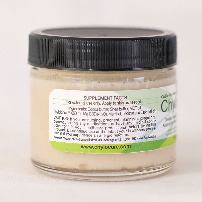 We added a new soft, semi-solid shea butter that enhances the cream to maintain its smooth application and maximize its’ nourishing benefits. This is a luxurious body cream consisting of just 7 simple ingredients (see below). Lightly scented and ideal for extended massage. Sourced from hemp flowers grown in the Mid-Atlantic region of the USA, Chylobinoid® is a mineral coordinated cannabinoid complex with enhanced bioavailability. It contains CBDa and CBD, unlocks the power of CBDa and is superior to CBD. The fusion of hemp’s ancient wisdom and leading university research has created this highly effective extract. Our products are 3rd party tested and verified to be 100% free of pesticides, solvents, and heavy metals.